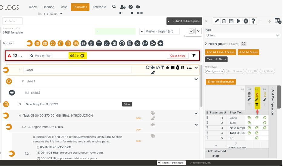 There is a new filter available on Templates that lets you filter the Steps of the Template based on Step Title and Configurations.