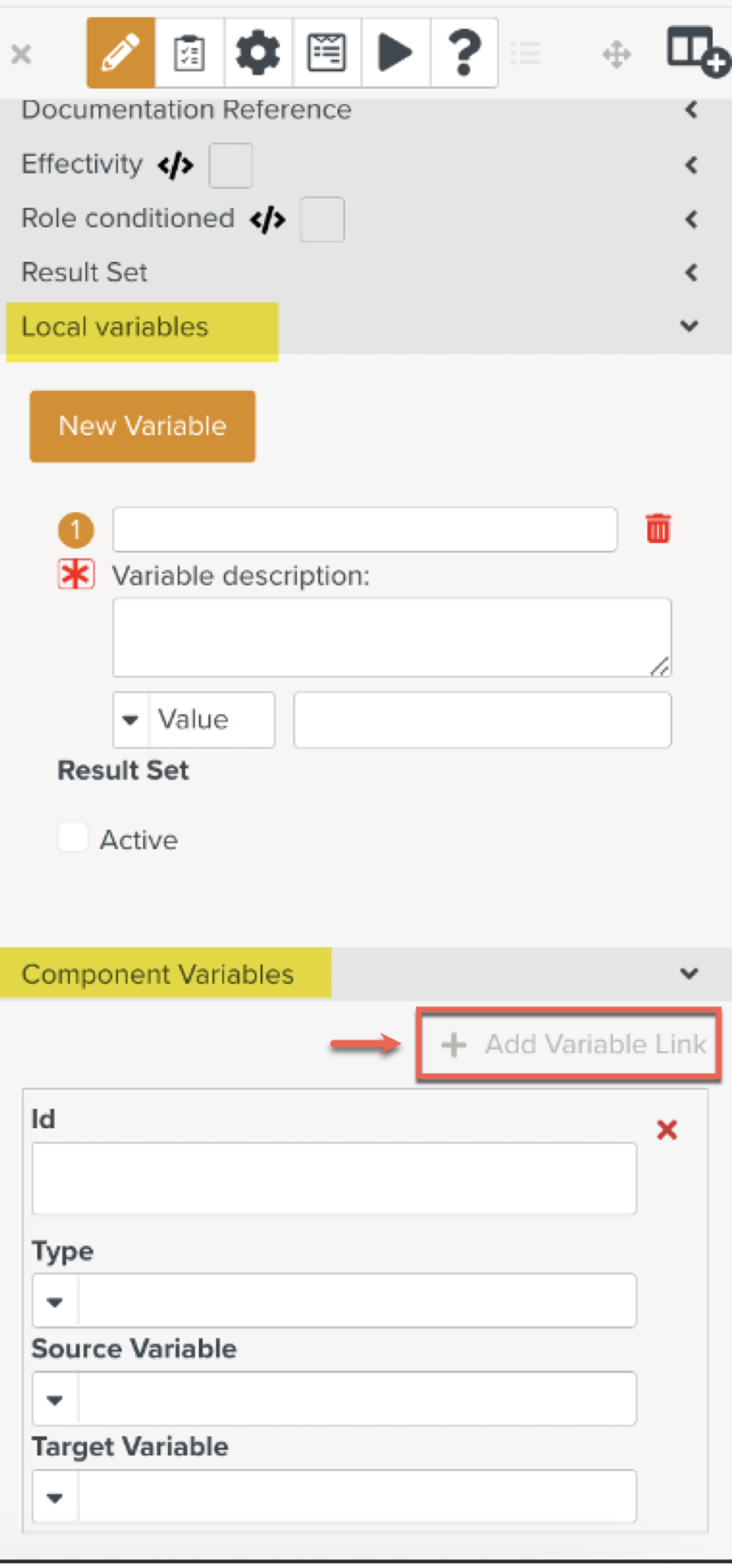 You can override Component Variables with Variables from the Template/Step that contains the Component. The Component Variable can be linked with the Template/Step Variable using the option shown below. The Source Variable from the Template/Step can be linked to the Target Variable from the Component.