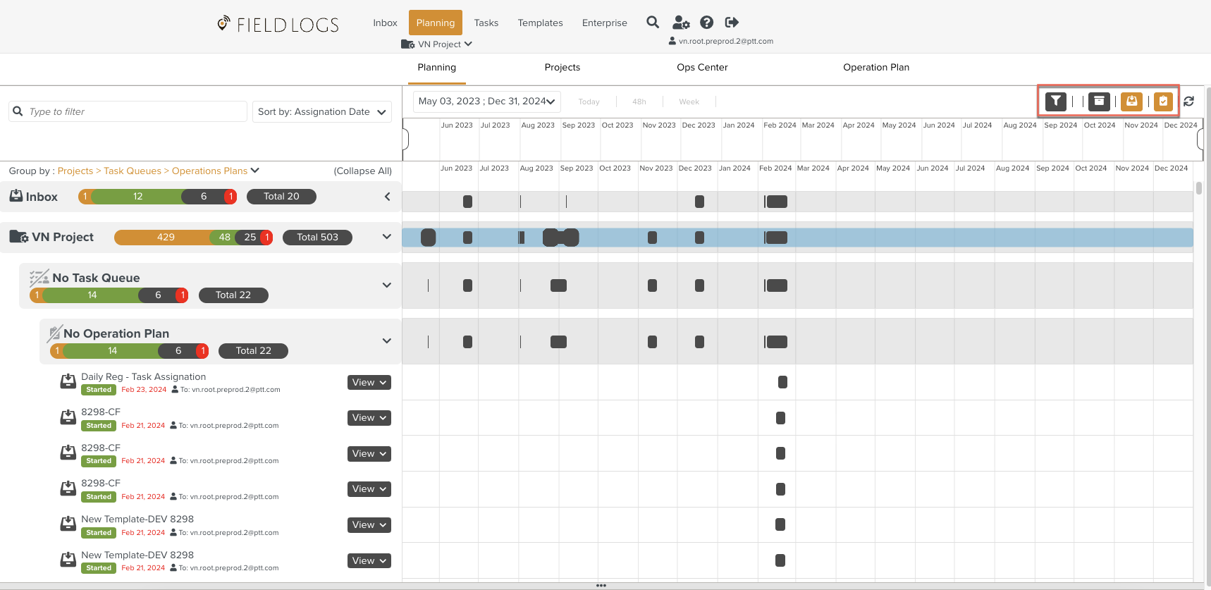 The Planning Page has been improved to optimize the screen layout. Task Filters have been organized into a separate panel leaving more space for planning information.