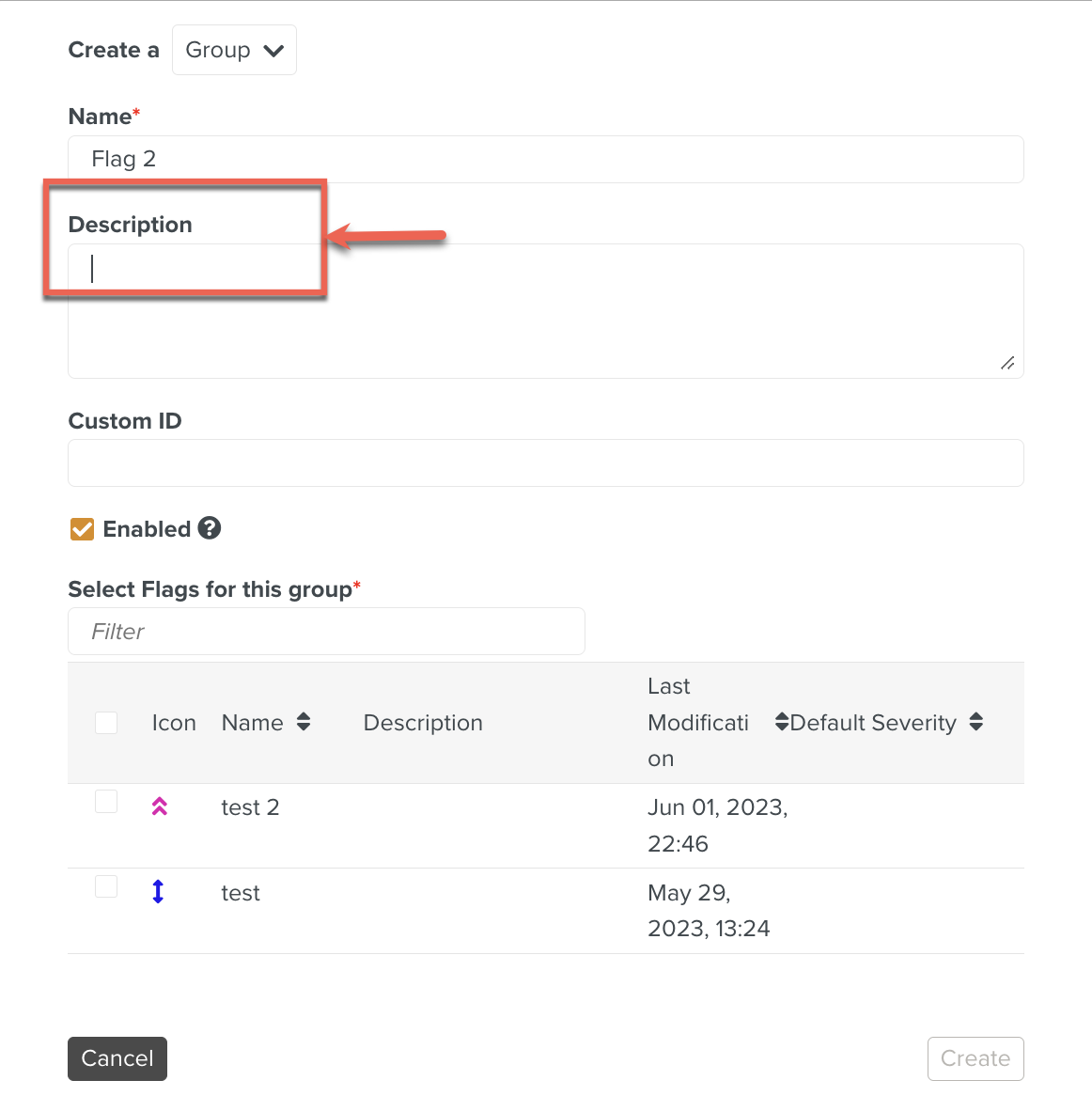 Expand the Create Flag dropdown to select the Create Flags Group option.