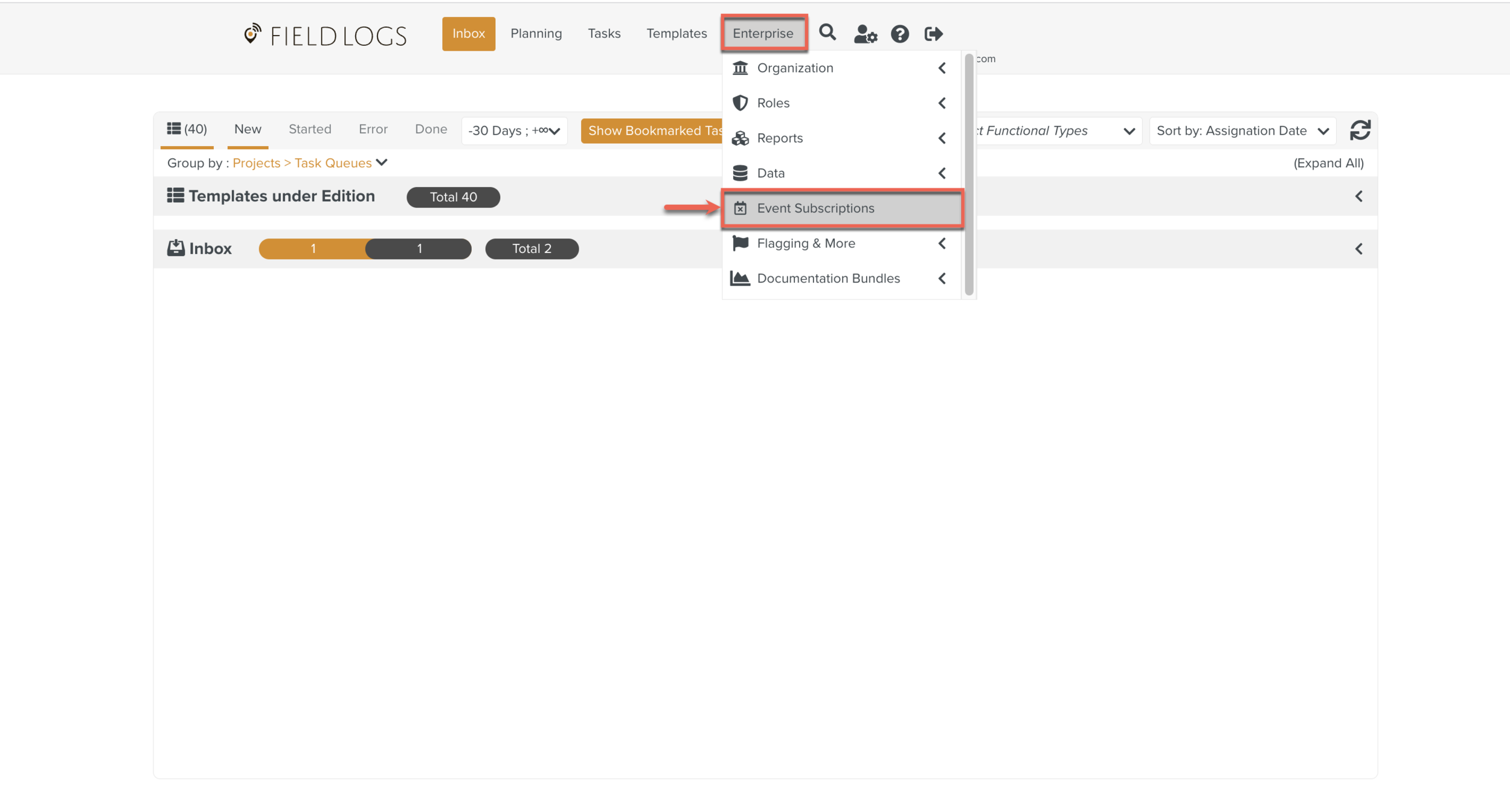 Deleting an Event SubscriptionTo delete an Event Subscription:On the main menu, go to Enterprise > Event Subscription.Select the Event that you want to delete.Click Delete.A success message is displayed.