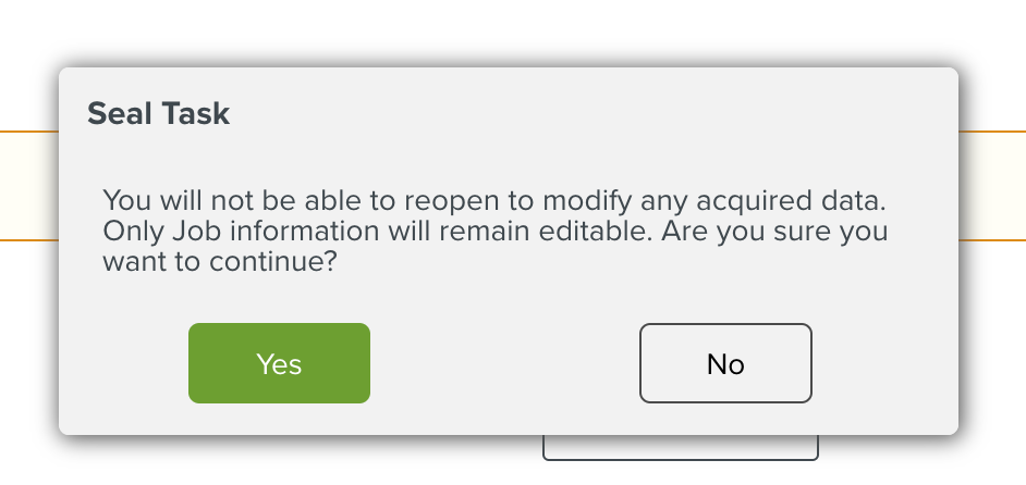 The following confirmation dialog boxes appear before the Task is entirely Sealed.