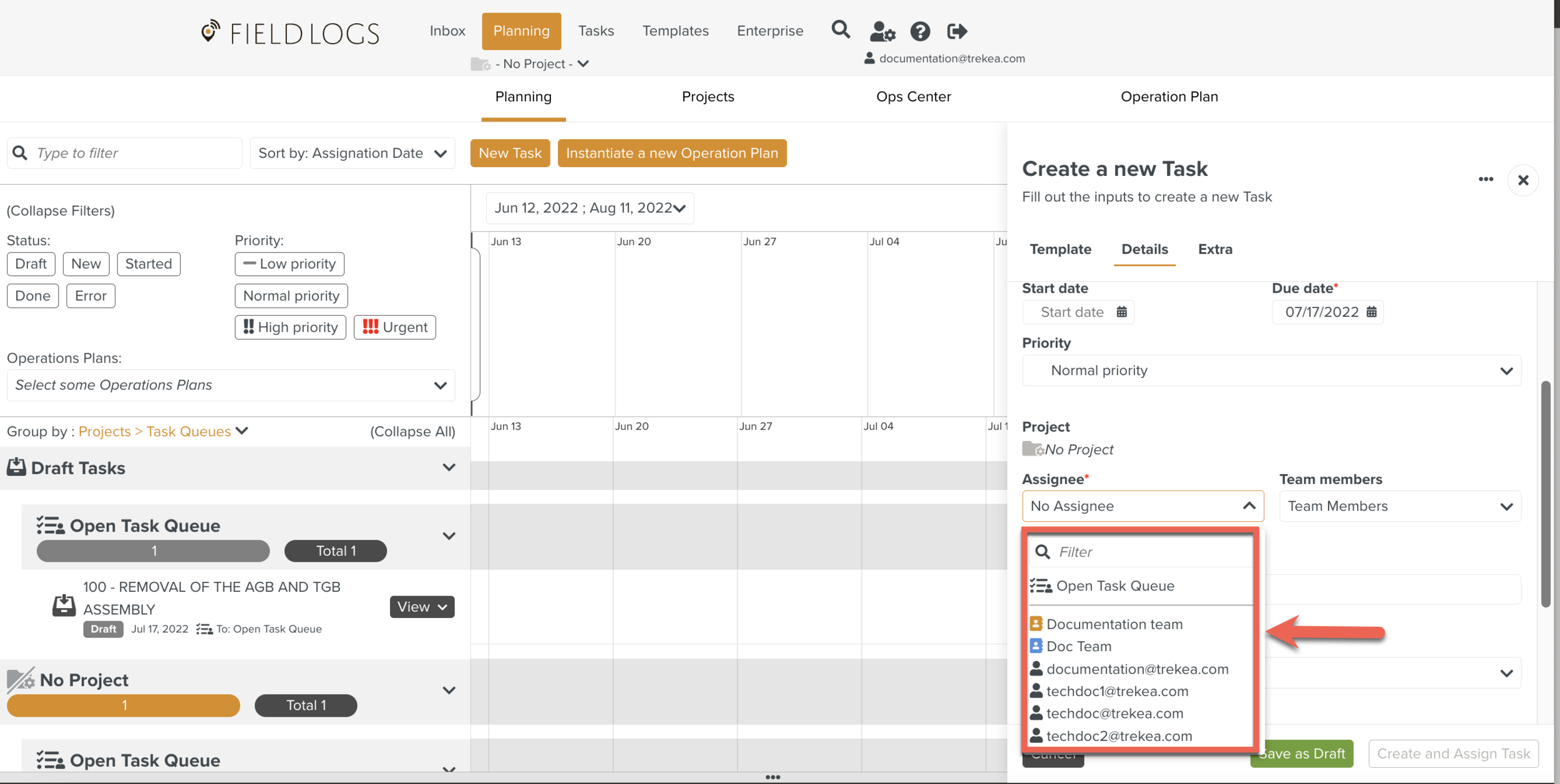 Click the Assignee dropdown to view the list of members, Task Queues and Teams as shown below.