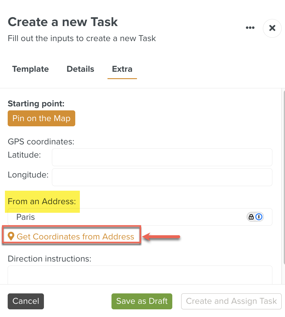 Enter an Address in From an Address field and click Get coordinates from Address to convert the Address into GPS.