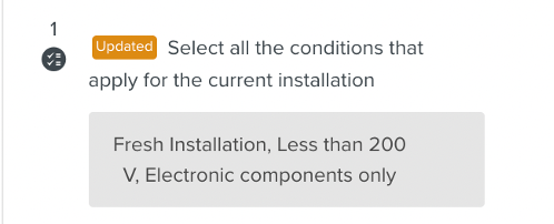 A Multi-check input element allows the user to select several answers among predefined answers. The user needs to validate the step after selecting the answers.