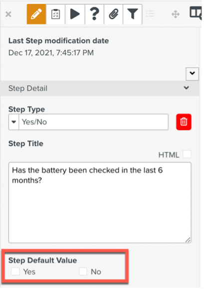 In addition to the options described in Setting Up a Step, you can use the to set up the default value for the Yes/No input element.
