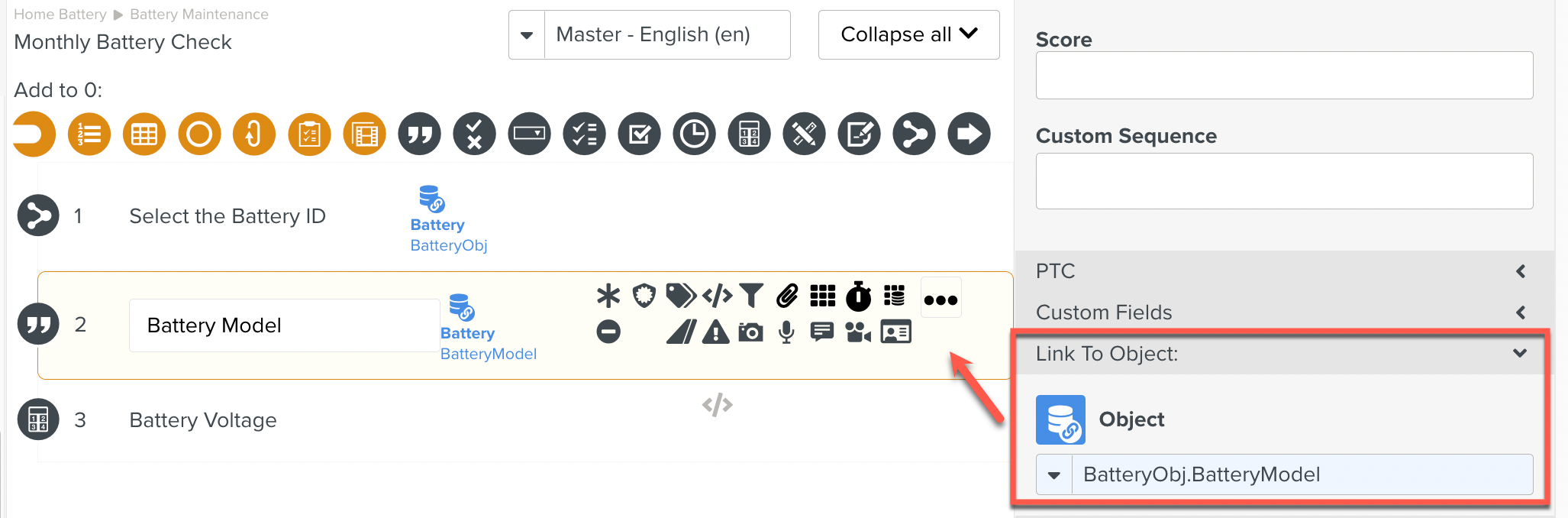 Create a Template variable of type Object. Bind the Template variable to the desired Object. Here a variable BatteryObj is created and bound to the Battery Object.