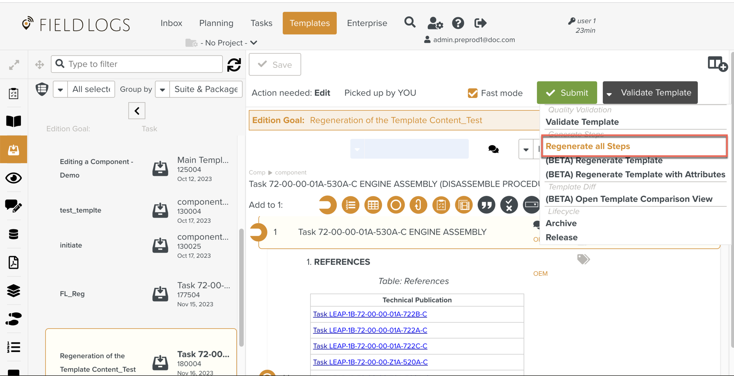 (BETA) Regenerate Template with Attributes is used to Regenerate the whole Template from the Reference manual while keeping some custom changes and Step Attributes.