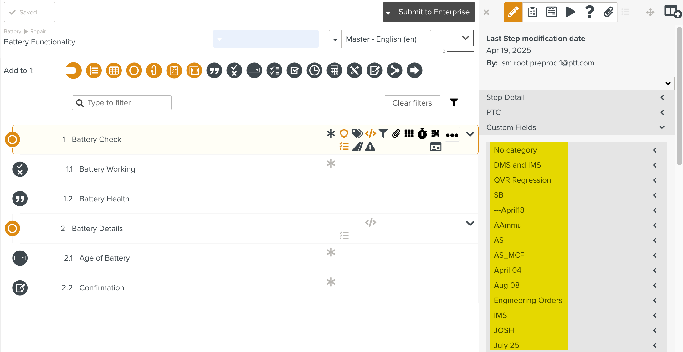 Custom Fields are created by authorized users for each Template or Step. Custom Fields can be categorized. Custom Fields are created to store any extra information about the Template.