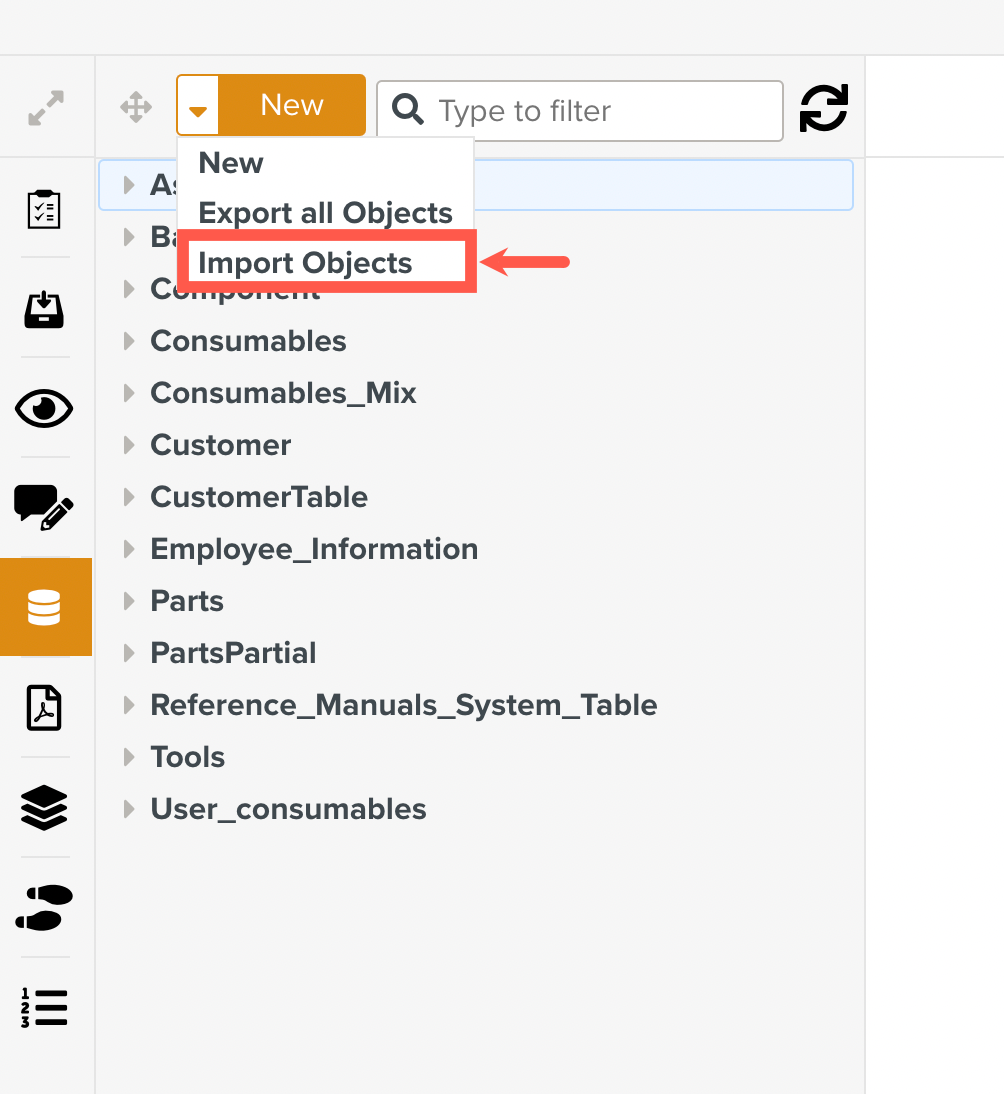 After creating or importing an Object model, you can also import data. The data file to be imported must be in .csv format.