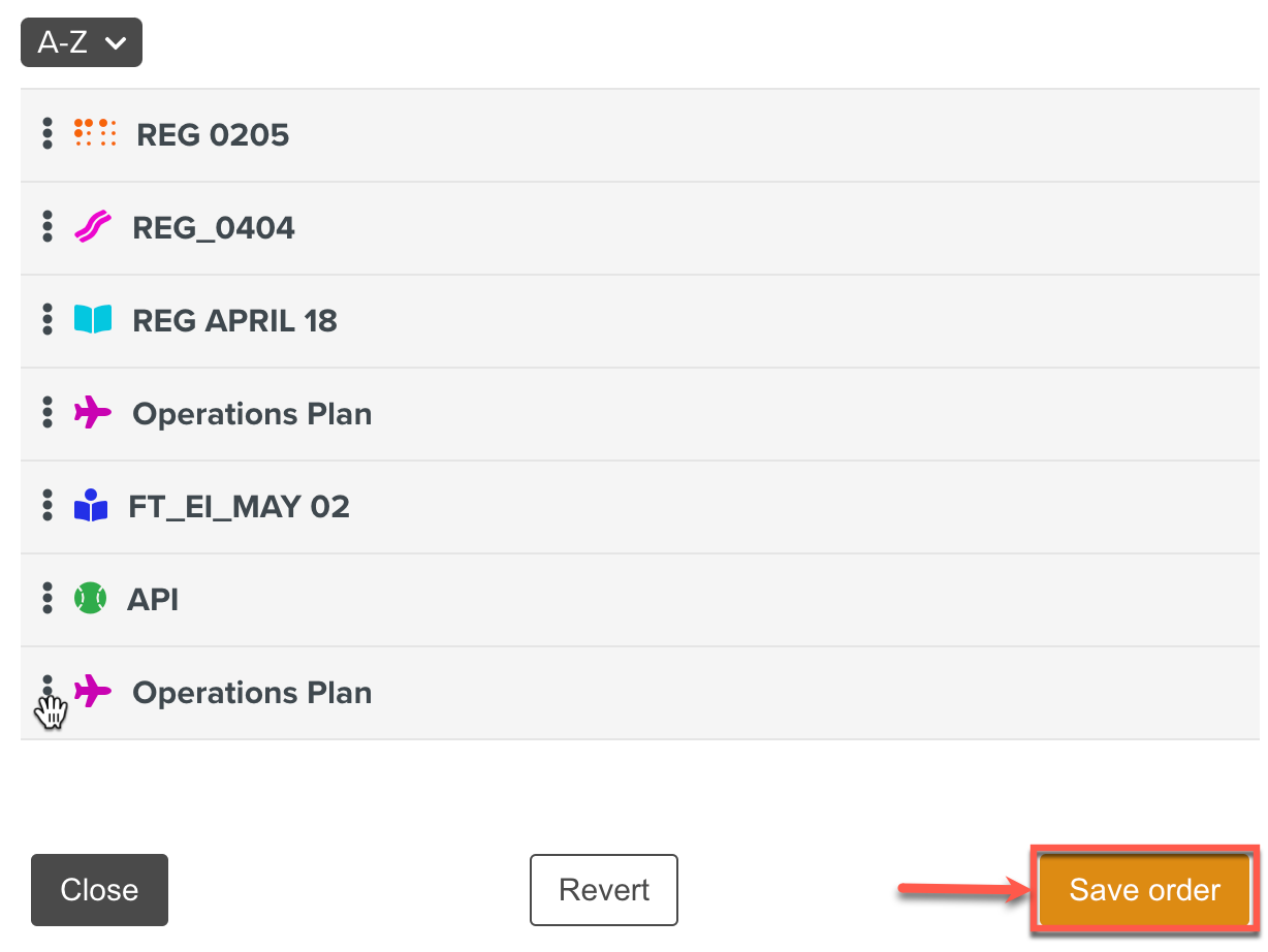 The list of Functional Types can also be arranged in a customized order. Place the cursor as shown below and drag to the required position.