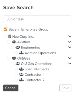 An enterprise saved search is available to all the members of the enterprise group where the search was saved.
